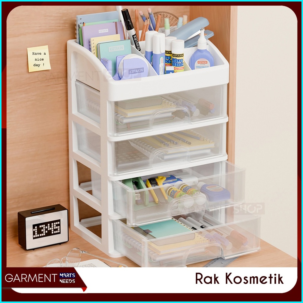 Rak Kosmetik 3 4 Laci Susun Tempat Make Up Penyimpanan Serbaguna Organizer Meja Aesthetic Putih