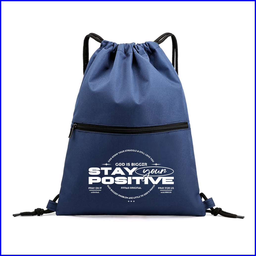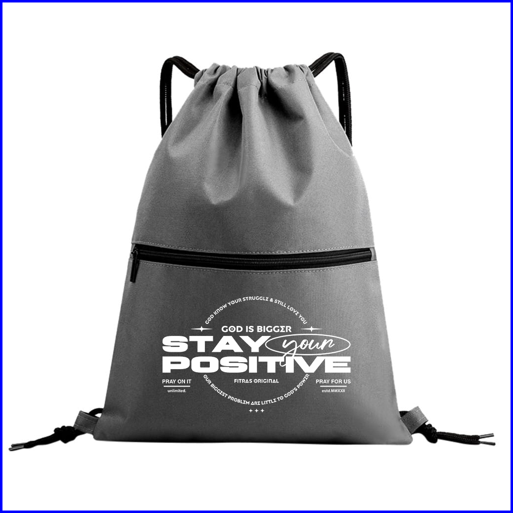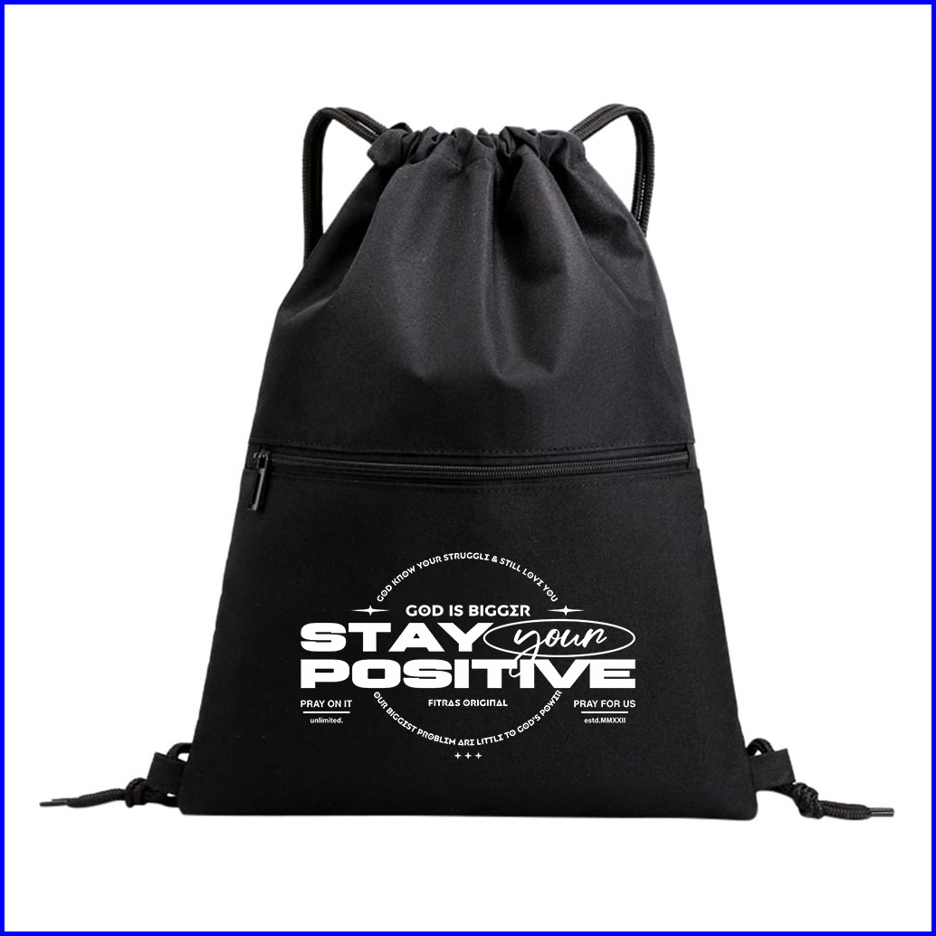 Fitras - Tas Serut Kanvas Pria Font Staypositve Unisex Tas Kombinasi Warna Hitam