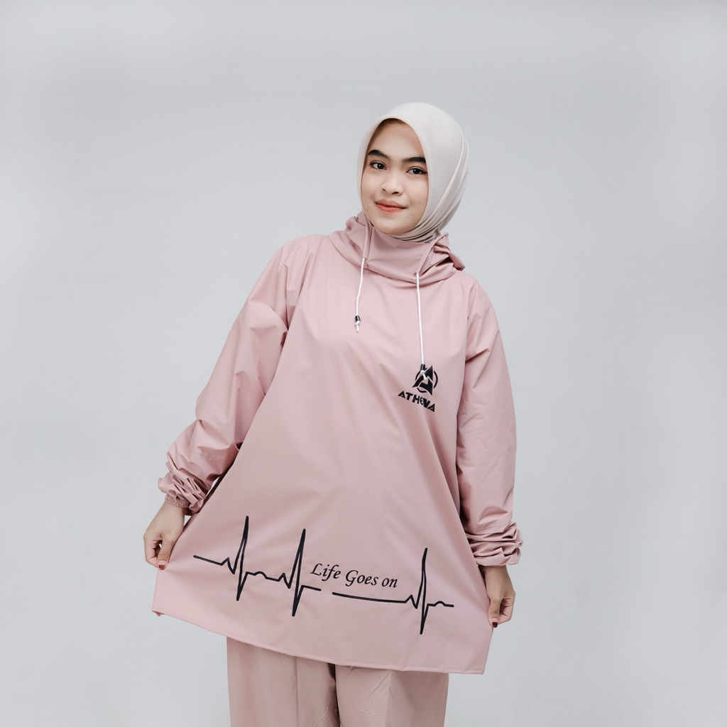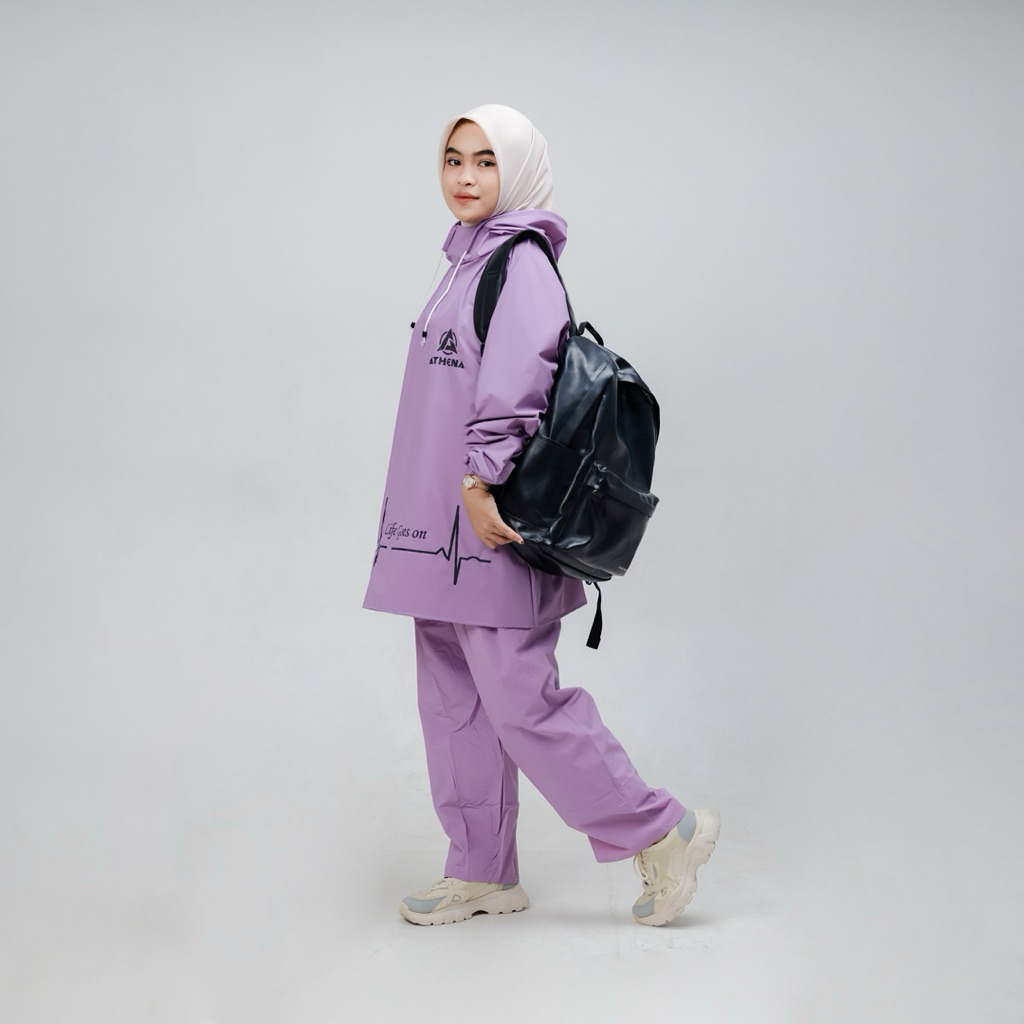 Jas Hujan Setelan Hoodie Tanpa Ziper Pria Wanita Dewasa Waterproof Tebal Kuat Elastis