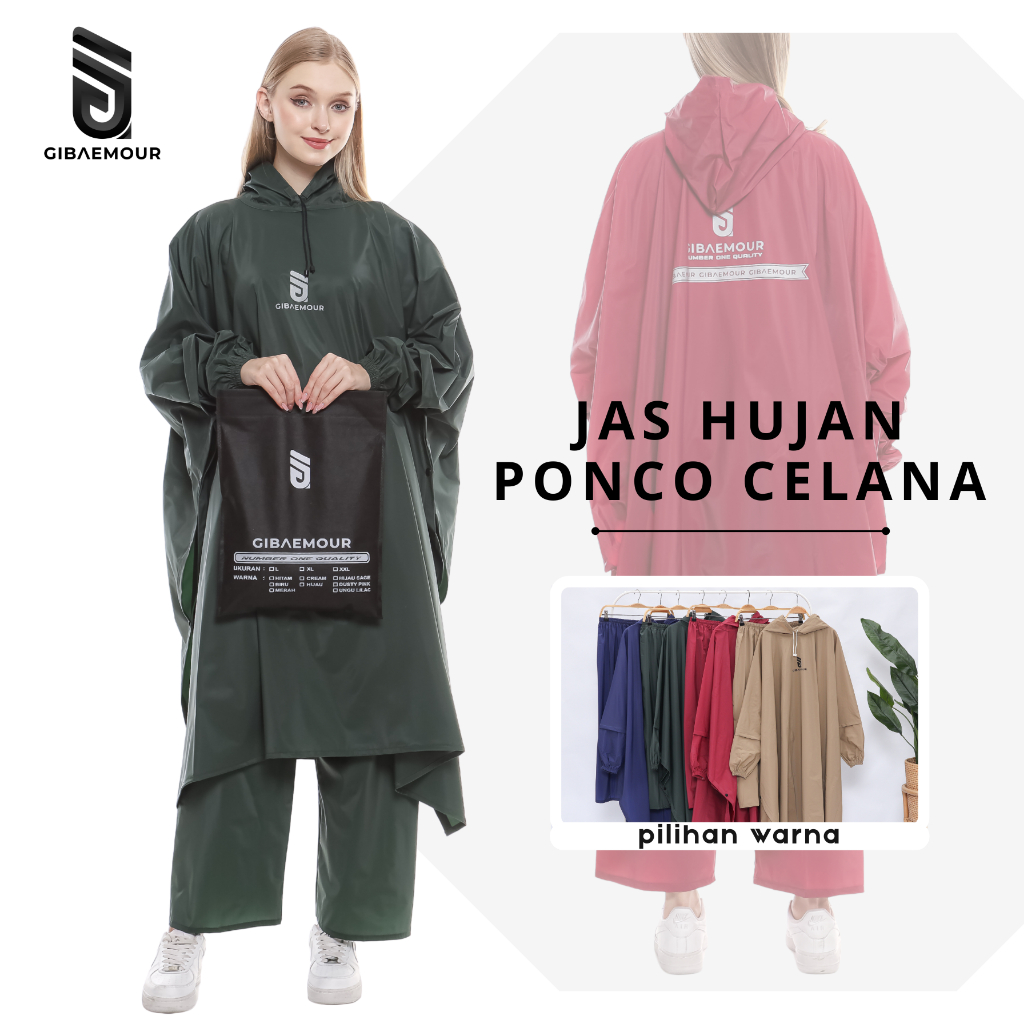 RAINCOAT, Jas Hujan Setelan Ponco Celana Kelelawar Jumbo Dewasa Pria Wanita Karet PVC Premium Waterproof Tebal Elastis O