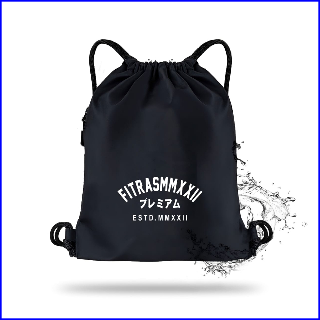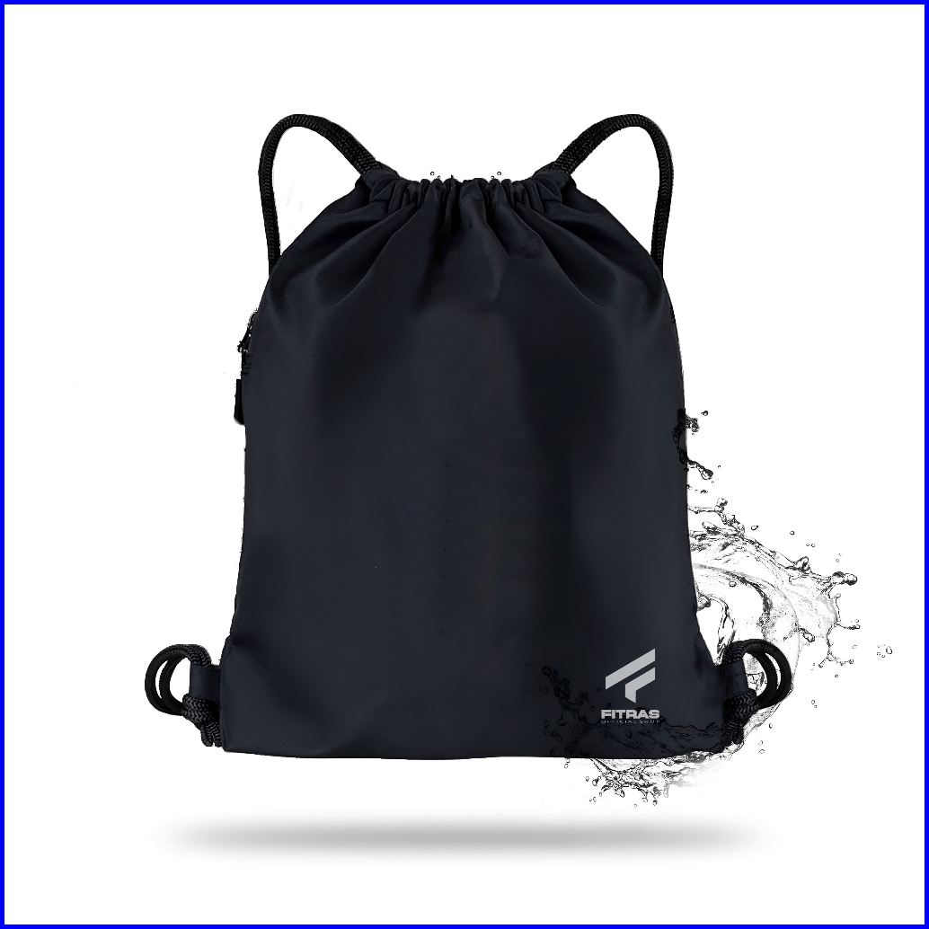 Fitras - Tas Serut Pria Wanita Unisex Polos Simple Warna Hitam Tas Olahraga Anti Air