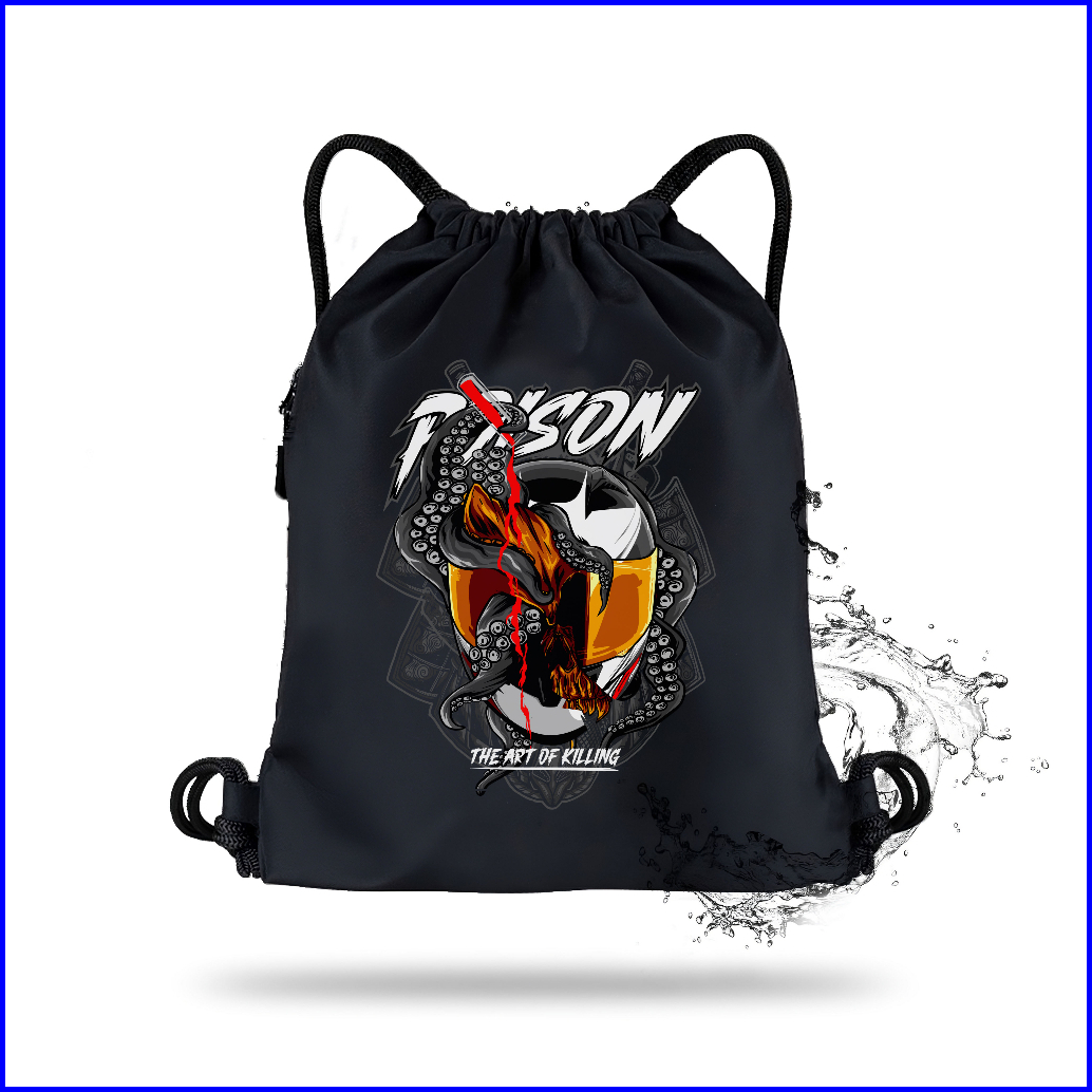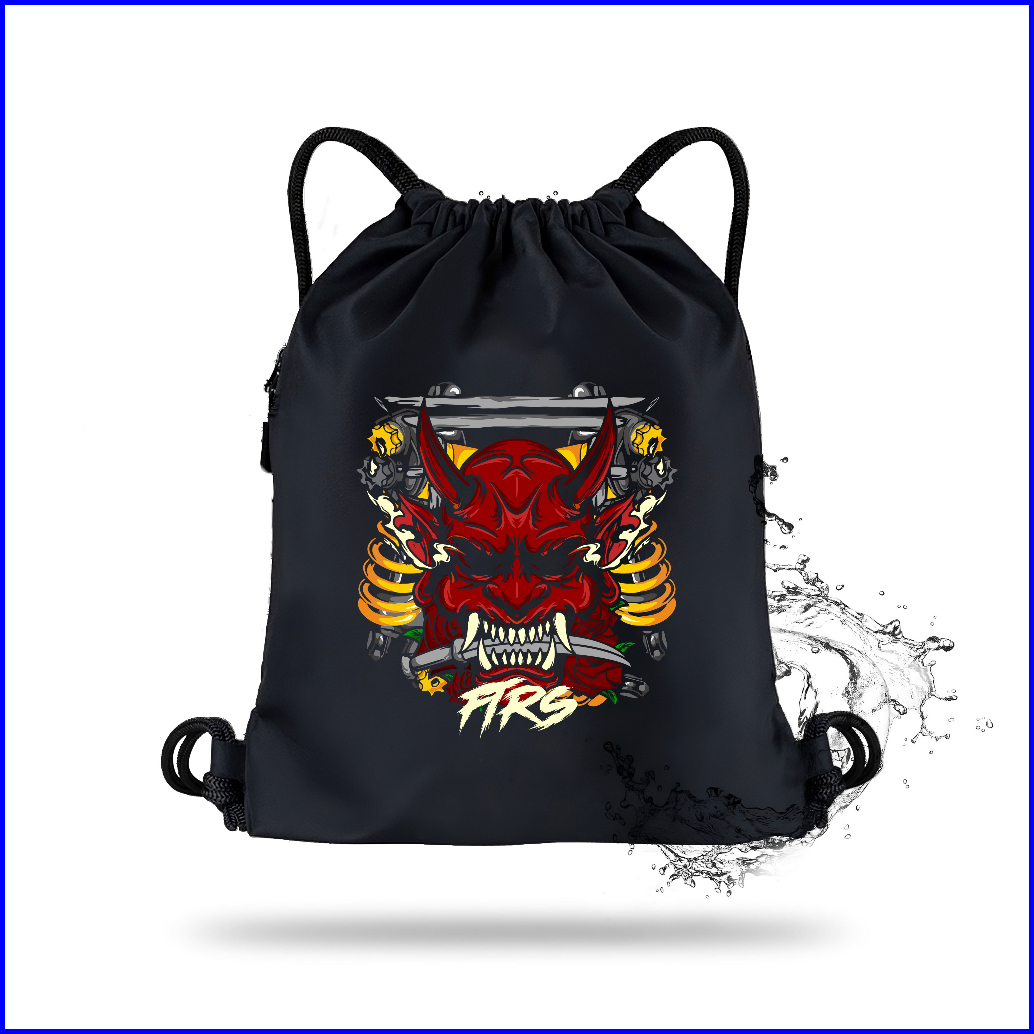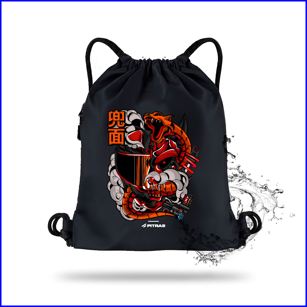 Fitras - Tas Serut Pria Motif Helmet Pison Warna Hitam String Bag Waterproff