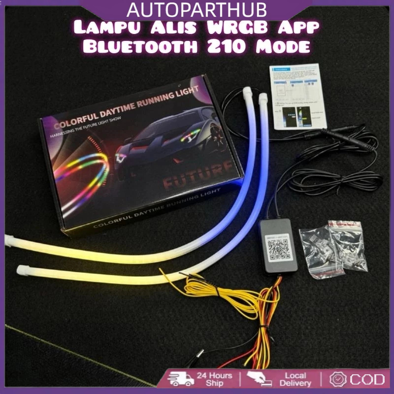 Lampu LED DRL Alis Flexibel RGB APP 30 cm Welcome + RGB Matrix Mobil Motor Selang Fungsi Sein Rem Senja Type Premium