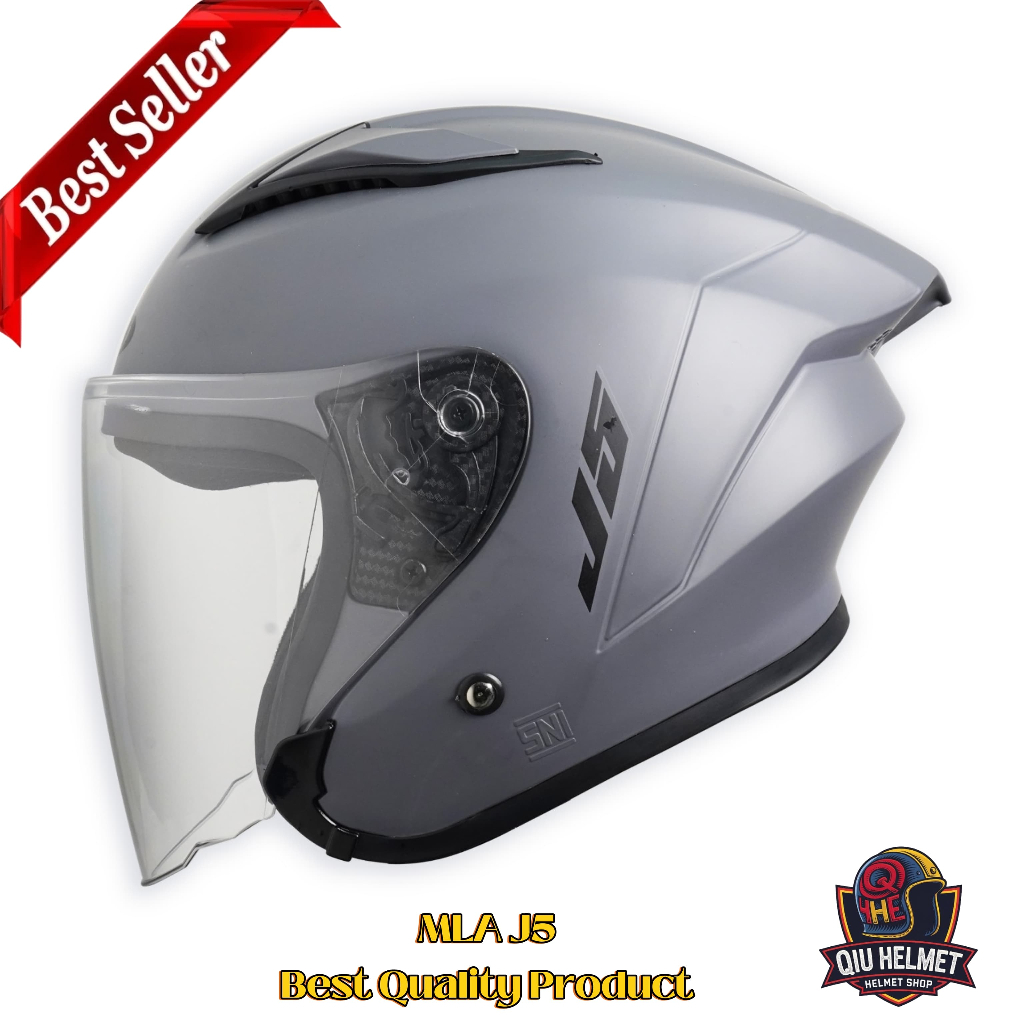Helm MLA J5 / ST15 Grey Doff Kaca Visor Bening / Helm Half Face Premium Untuk Pria Dan Wanita Dewasa SNI