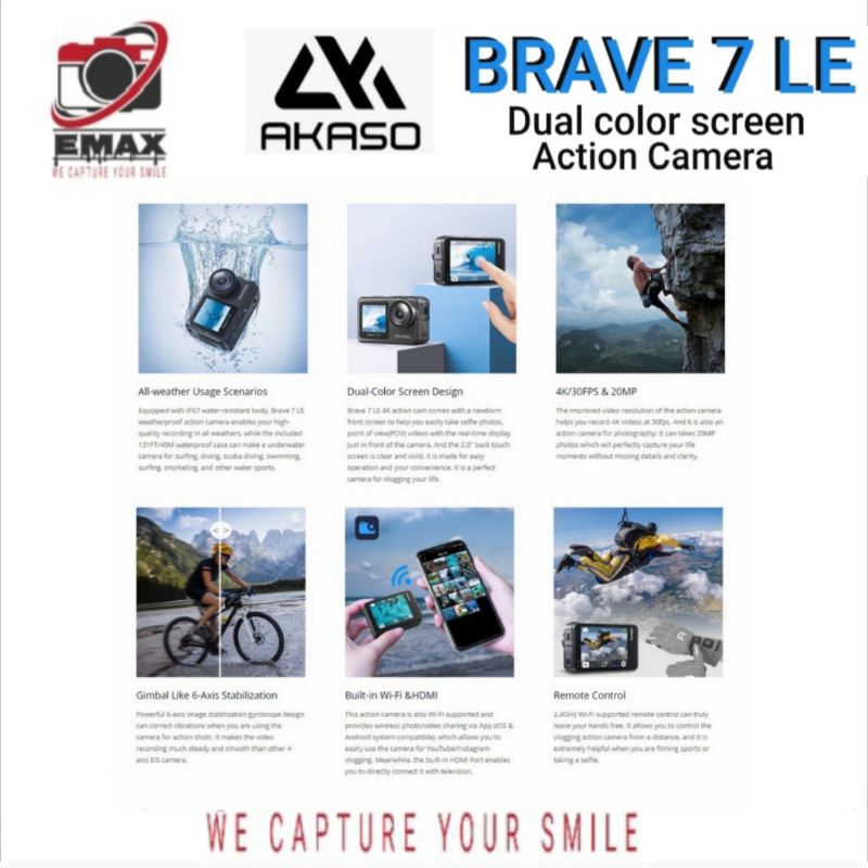 Akaso Brave 7 Le 4K Dual Color Screen Action Camera Wifi Eis Touch Screen Waterproof Case Ipx7 Akaso Brave 7Le