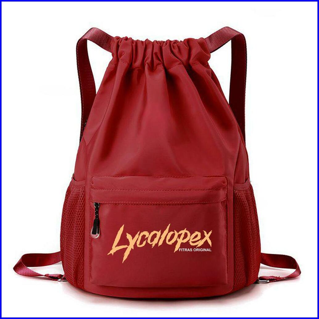 Fitras - Tas Serut String Bag Pria Wanita Tas Sekolah Tas Olahraga Motif Font Lycolopex