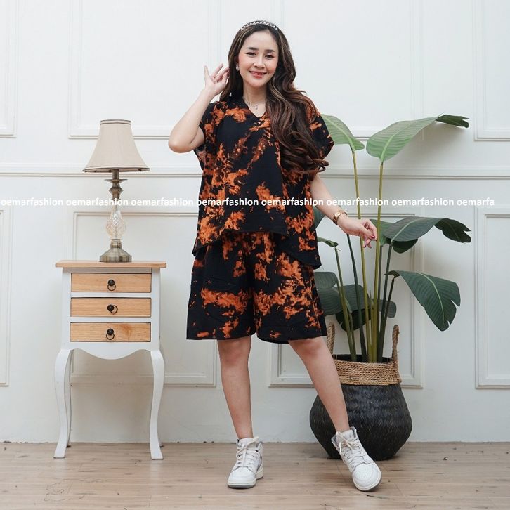 (Gratis Ongkir) SET ASTRID JUMBO LD 120 BAHAN RAYON BB MULAI 45-85 KG || MOTIF TIE DYE