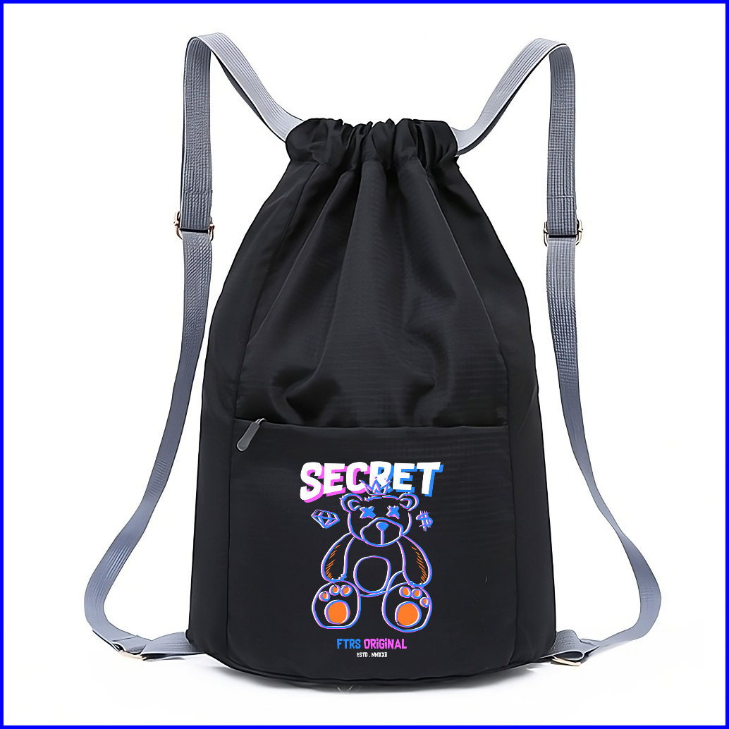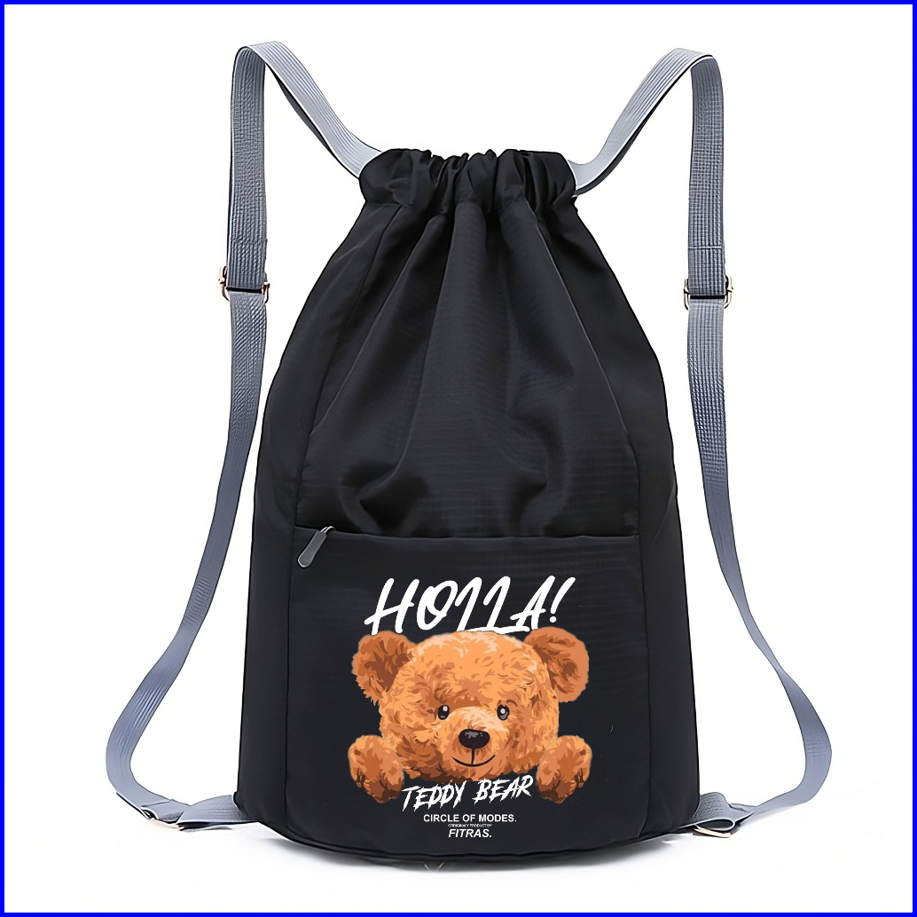 Fitras - Tas Ransel Wanita Backpack Motif Teddy Bear Holla Drawstring Bag Waterproff