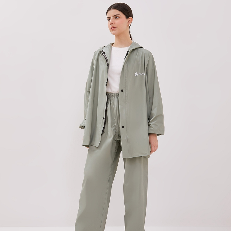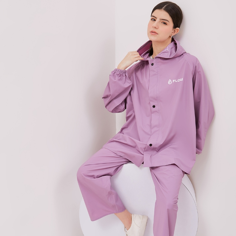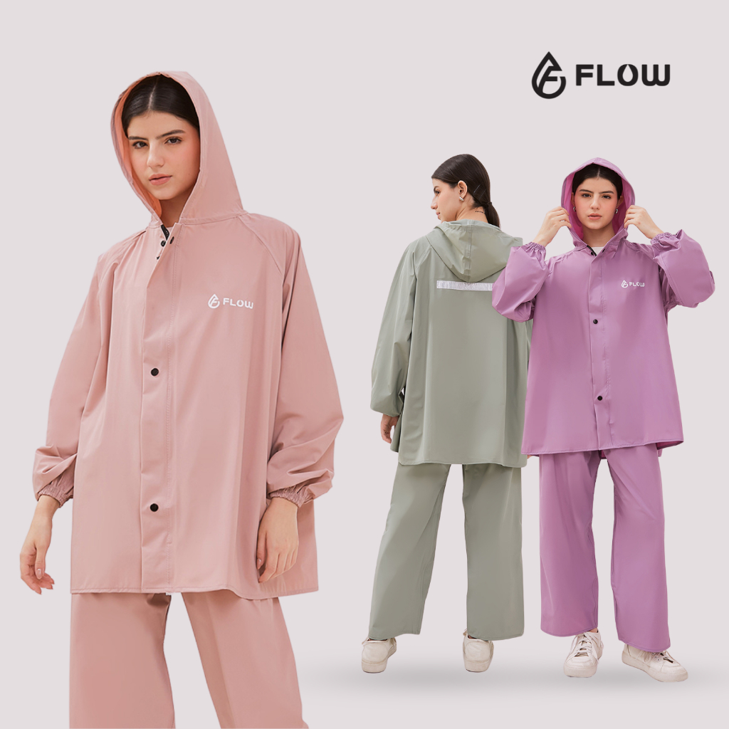 Jas Hujan Mantol Setelan Raincoat Pria Wanita Dewasa Tebal Dan Kuat Anti Rembes Warna Pastel By Flow