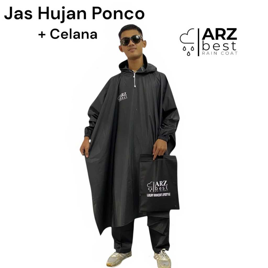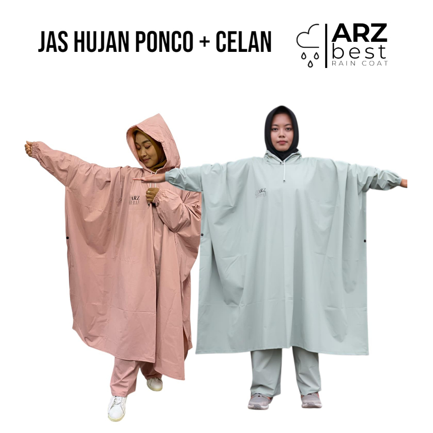 ARZ Jas Hujan Ponco dan Stelan Ponco Celana Mantel Hujan Kelelawar Bahan Pvc Tebal Elastis Raincoat Termurah
