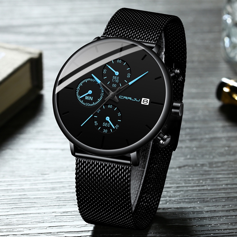 ✅ CRRJU Jam Tangan Pria Kalender Casual Korean Fashion Watch Pria Tahan Air Chronograph Olahraga Multifungsi