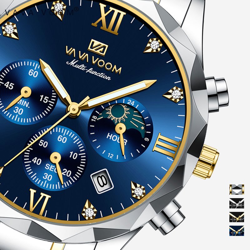 VAVAVOOM Jam Tangan Pria 100% Original Chrono Aktif Sporty Tahan air COWOK Kronograf LUMINOUS Quartz Analog tanggal Laki