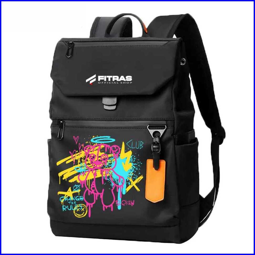 Fitras - Tas Ransel Pria Wanita Nilon Tahan Air Motif Brokenclub