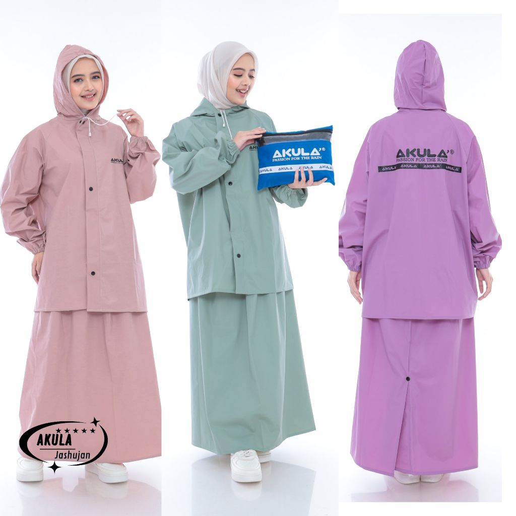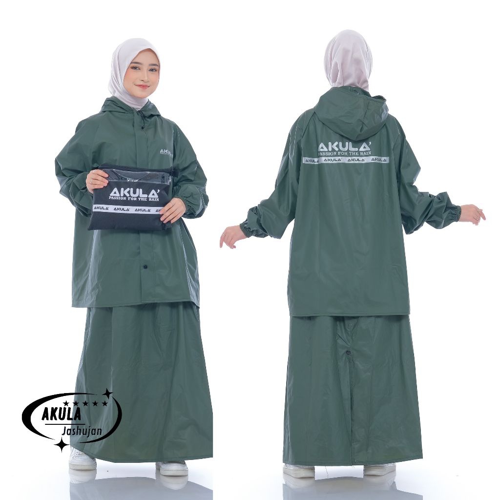 Jas Hujan AKULA RAINCOAT PREMIUM tebal Dewasa model set baju rok anti rembes