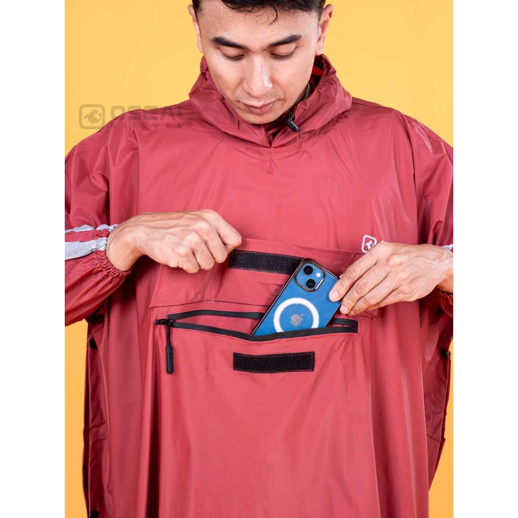 OSEAL Jas Hujan Ponco Kelelawar Jumbo Pria Wanita Dewasa Full Seal Noctula Series Merah