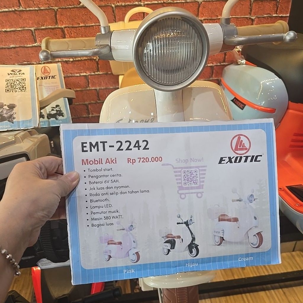 VESPA aki motor aki anak 2 sd 7tahun emt 2242 emt2237 emt-2222 6volt jok nyaman roda antislip dinamo usb lampu