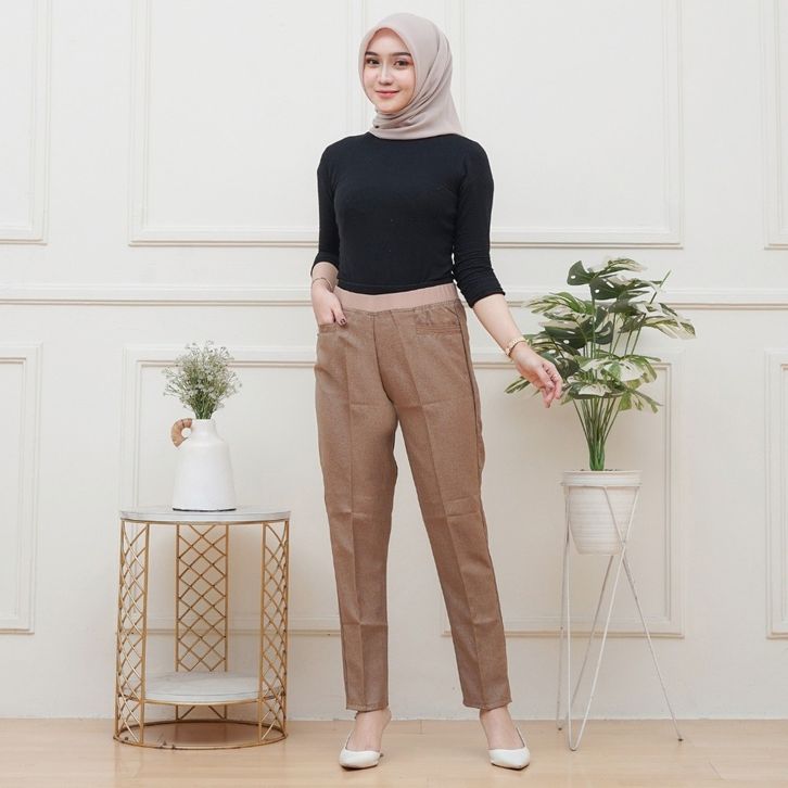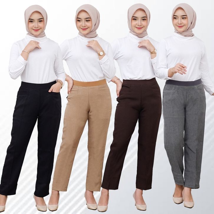 (Gratis Ongkir) Celana Kerja Wanita Kantor Pinggang Karet