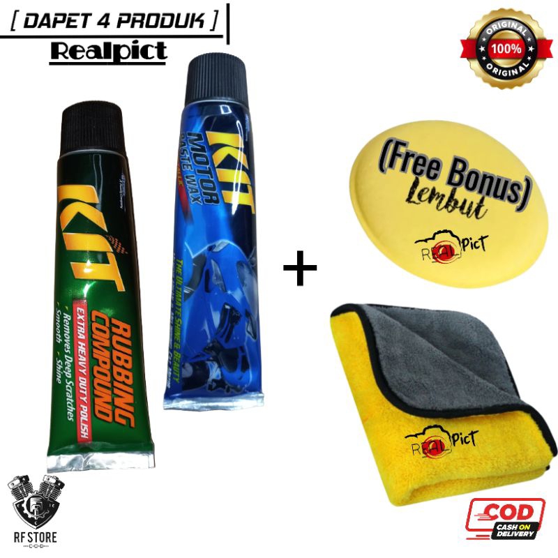 PAKET KIT RUBBING COMPOUND 60 GR+ KIT PASTE WAX METALLIC 60 GR+ KAIN LAP MICROFIBER 30 X 30 CM+ BUSA APLIKATOR FREE/ ROF