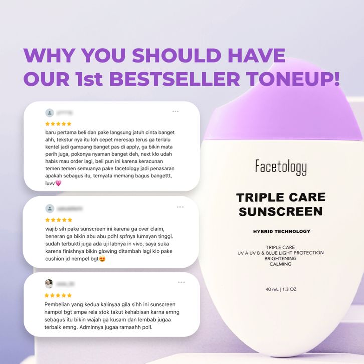 Promo Sunscreen Facetology F4c3t0l0gy Triple Care Sunscreen SPF 40 PA+++ 40 mili & 100 mili