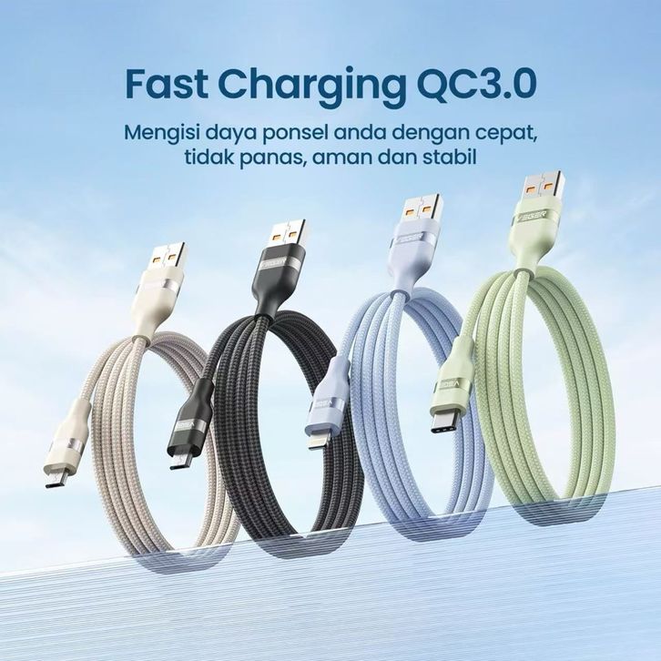 Kabel data VEGER V280 MICRO / V290 TYPE C / v300 LIGHTNING Q.C 3.0 fast charging garansi resmi 18bulan 1 kaleng isi 10