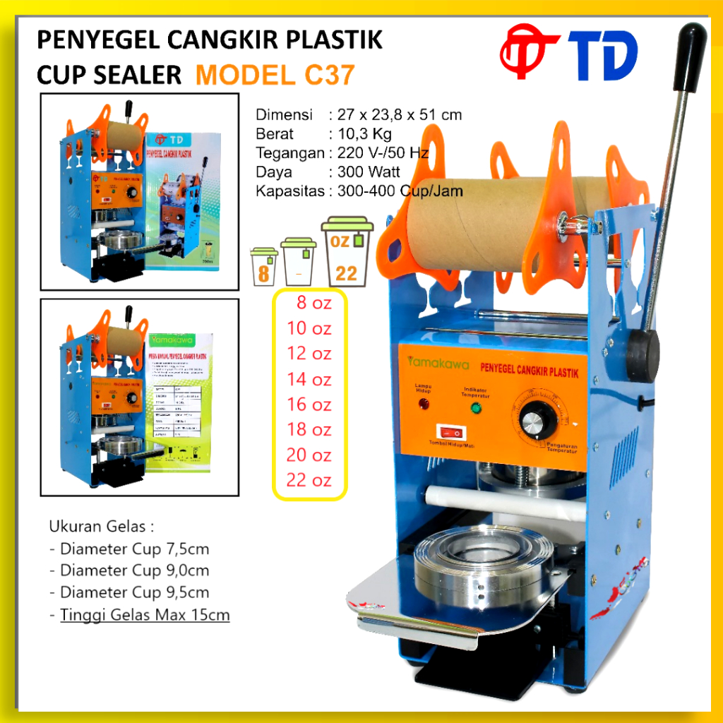 Mesin Cup Sealer C37 Garansi Resmi Omicko Ukuran Cup 8 Oz - 22 Oz Alat Press Minuman