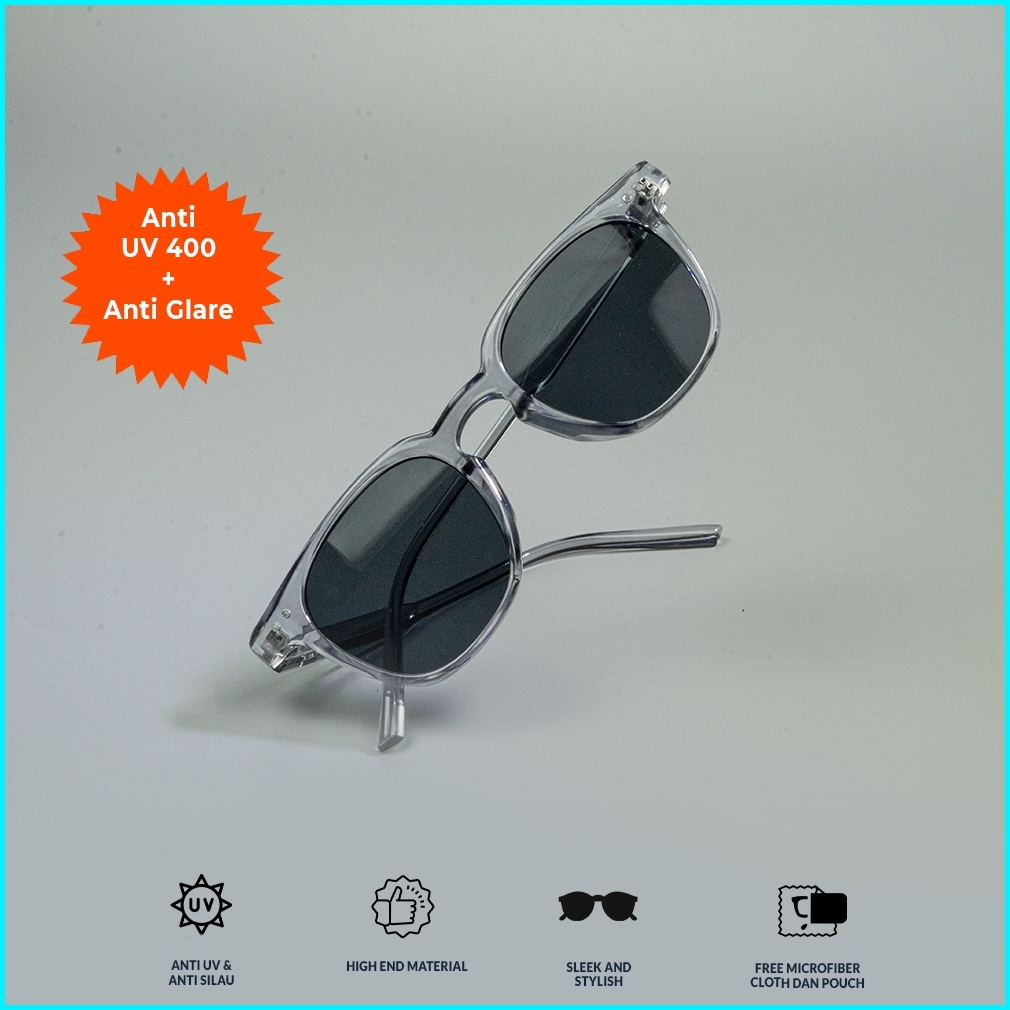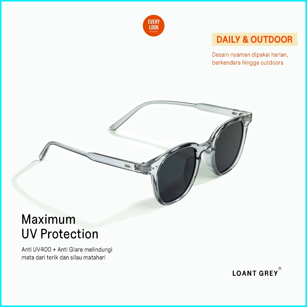 Loant Grey Sunglasses Kacamata Gaya Hitam Abu Abu Transparan Anti Uv Wanita Pria Retro Bulat