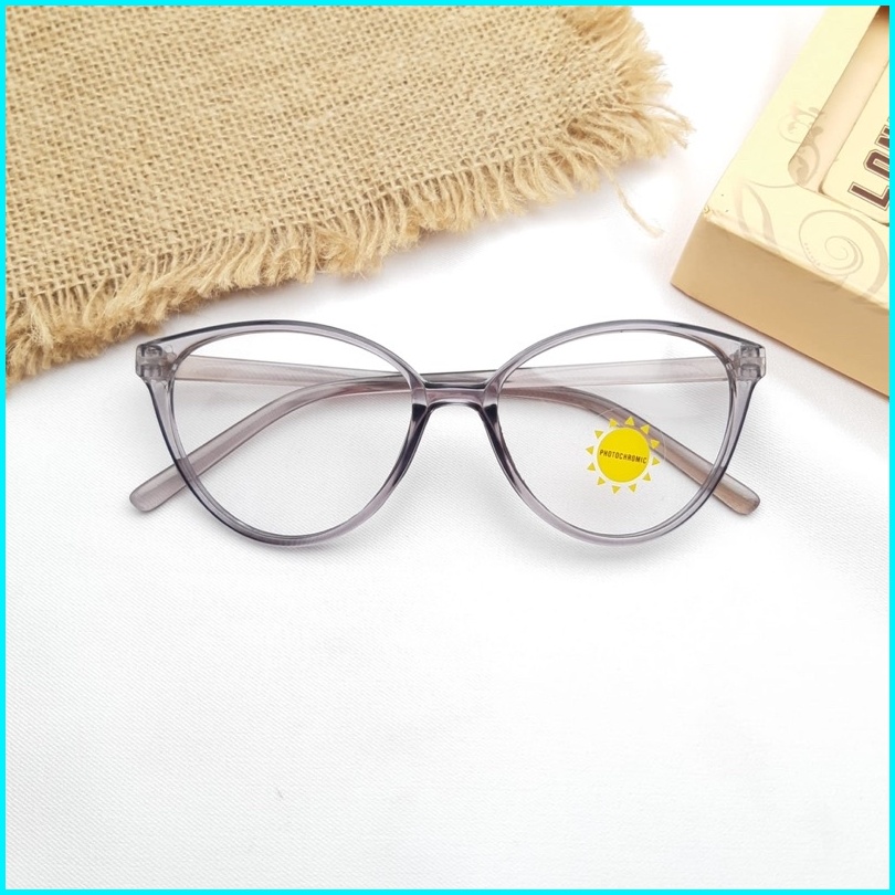 Paket Kacamata Cat Eye 608 Lensa Photocromic Anti Radiasi Bluecromic Bluray Kacamata Fashion Wanita Cat Eye Kecil Gratis
