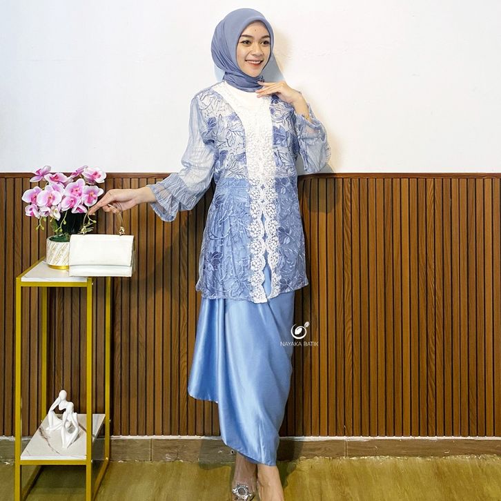 [Star] Lalita Oneset Baju Wanita Kondangan Modern Set Outer Brokat Tulle Premium Chantilly Rok Modern Roberto Carvalli