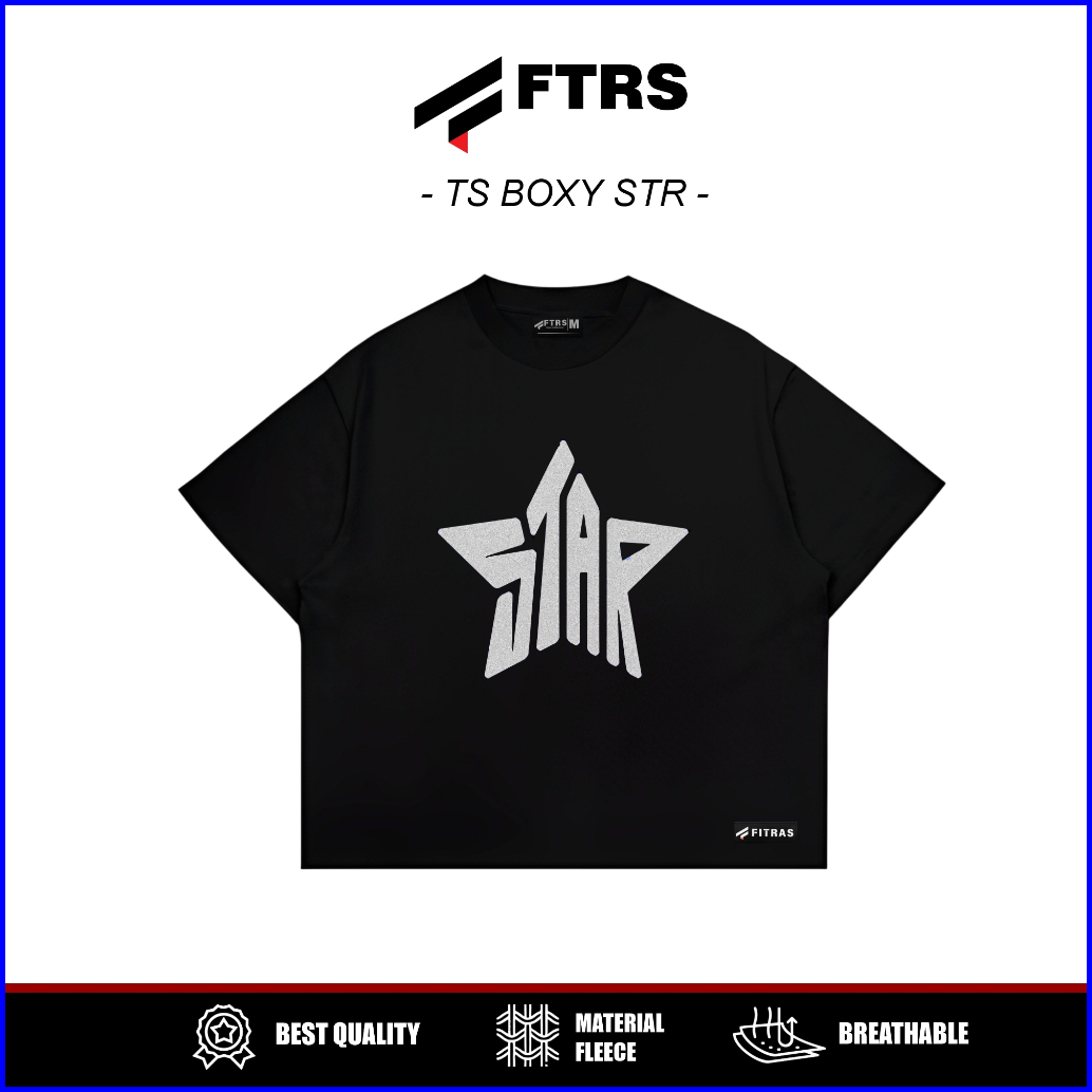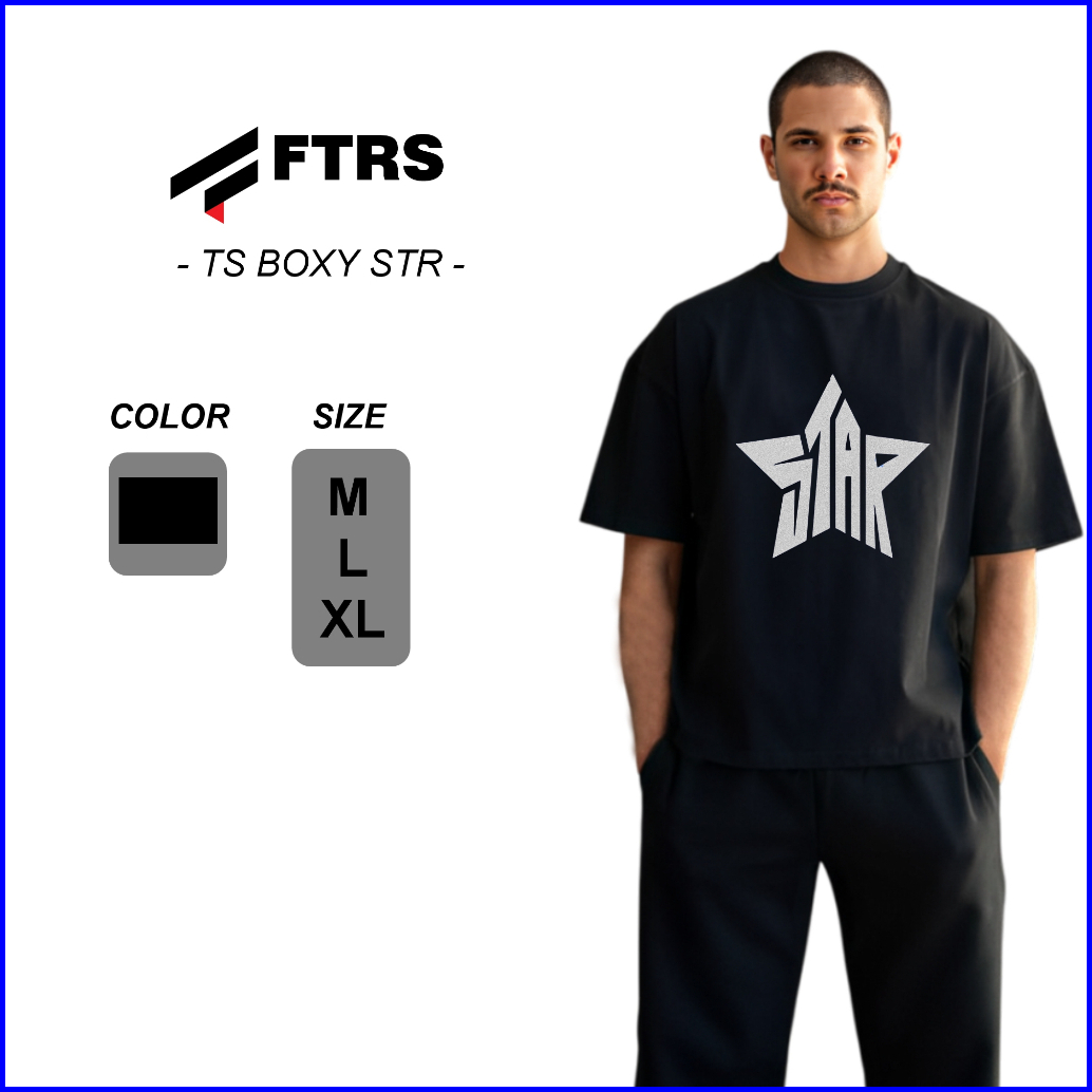 Fitras - T-shirt Oversized Black Boxy Pria Wanita Str Cotton 24s