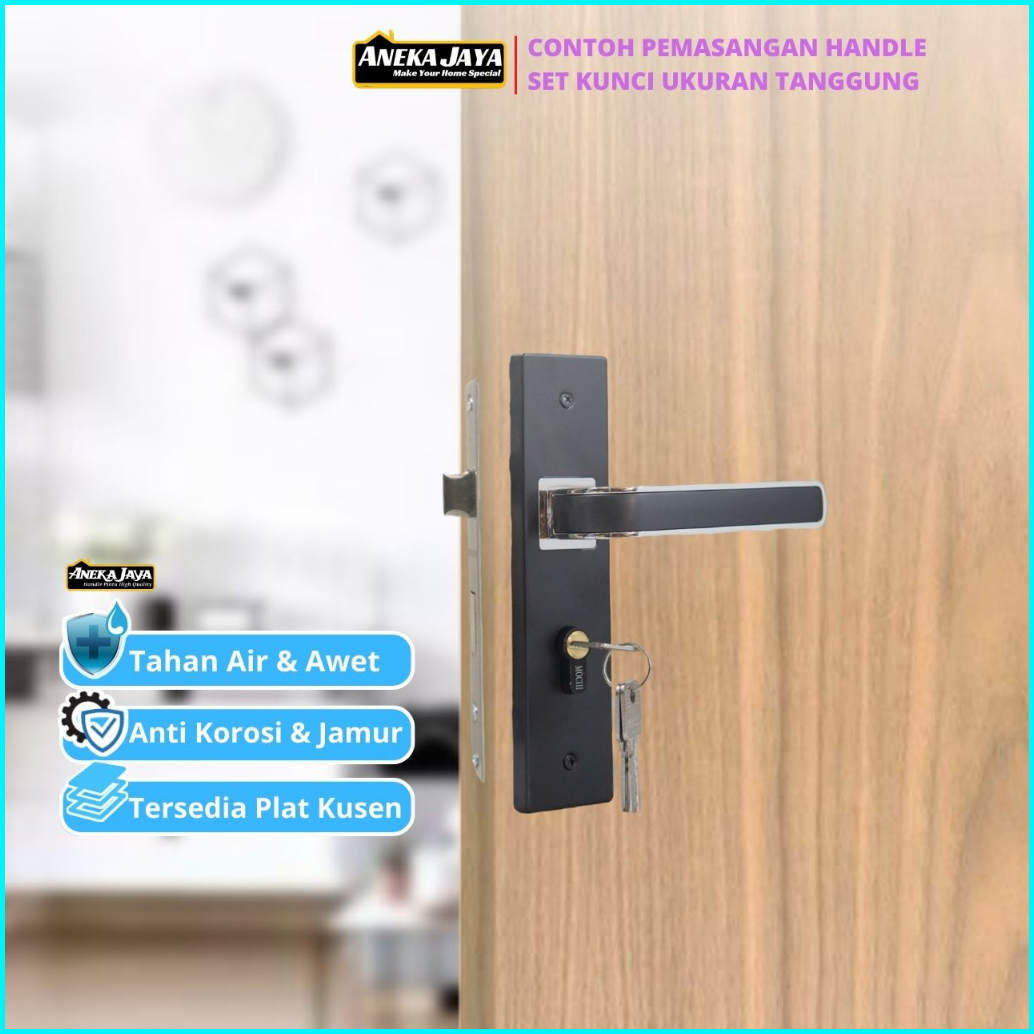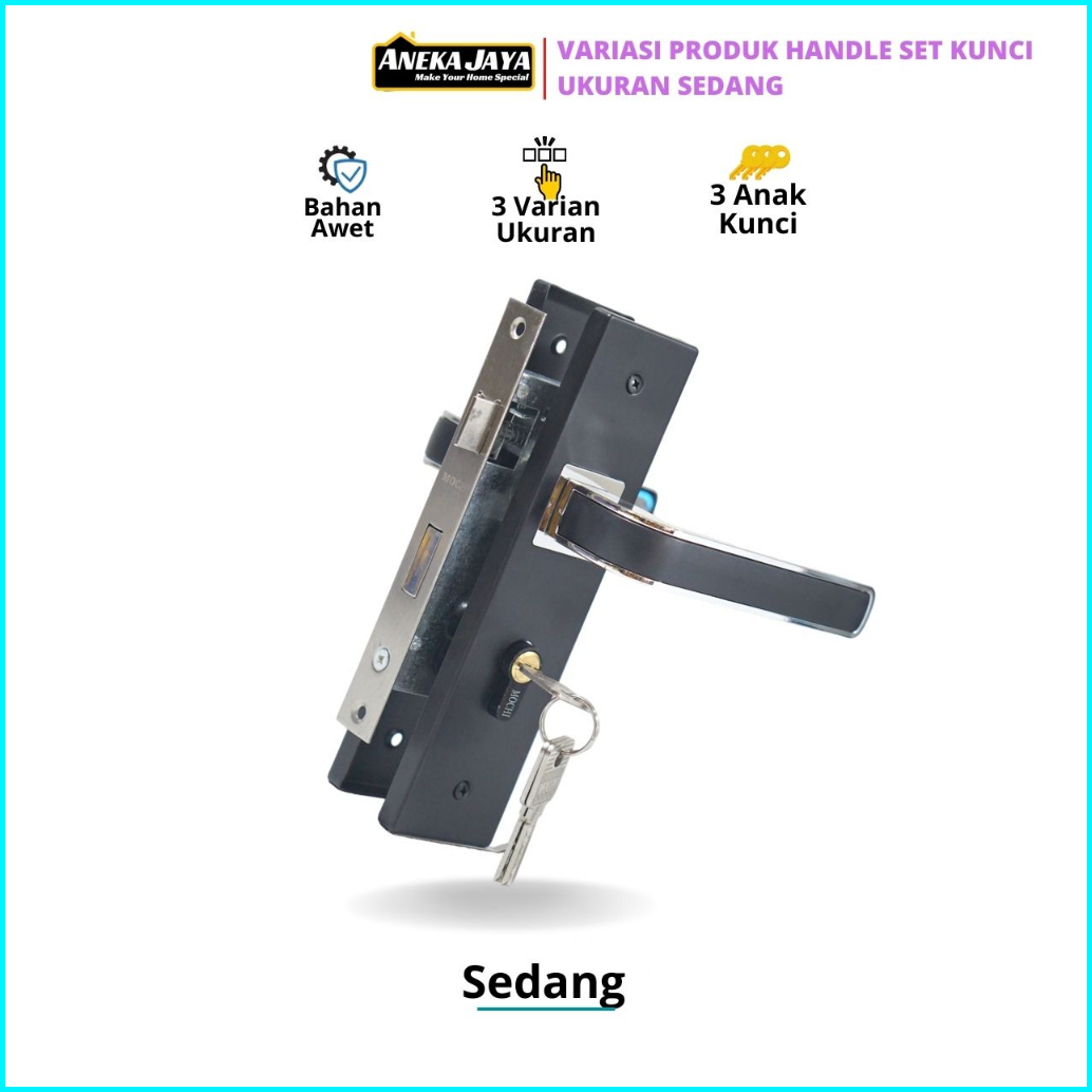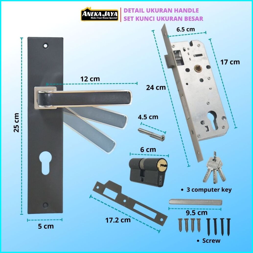 Handle Set Kunci Pintu Hitam Ring Silver Ukuran Besar 25 Cm Tanggung 20 Kecil 15 - Gagang Handle Kamar Utama