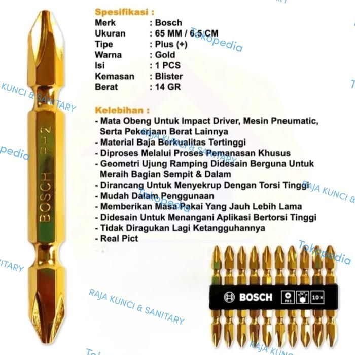 Mata Obeng Gypsum BOSCH PH2 (+) 65mm Magnet / Mata Obeng Gipsum 10pcs Gold BOSCH