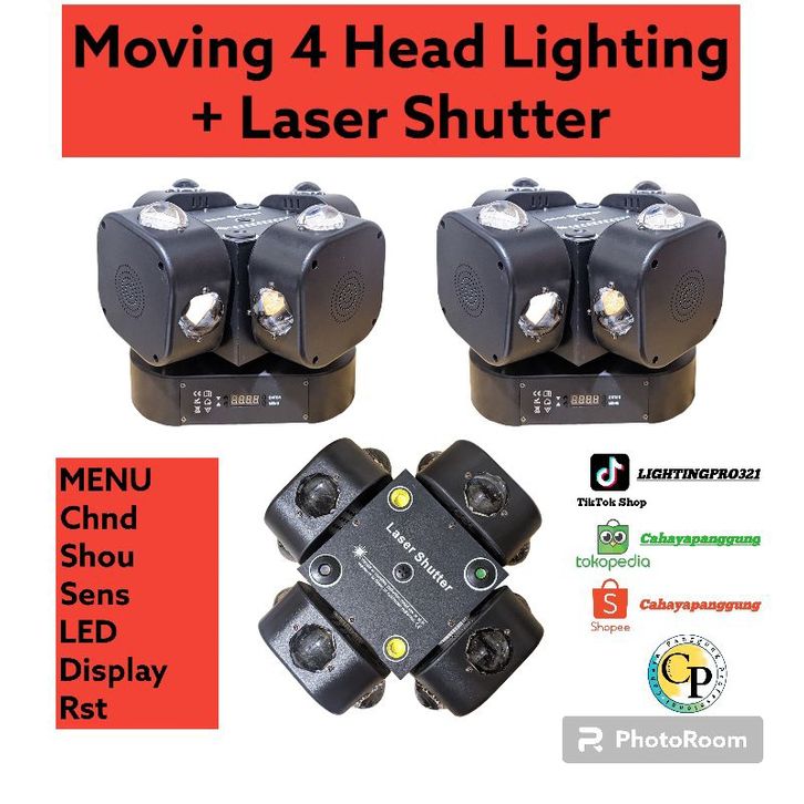 Moving 4 Head Lighting + Laser Shutter