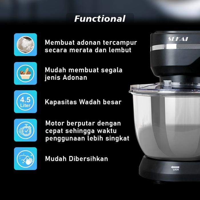 SEKAI Stand Mixer 4,5 Liter MX686B Pengaduk Adonan Low Watt MX 686B