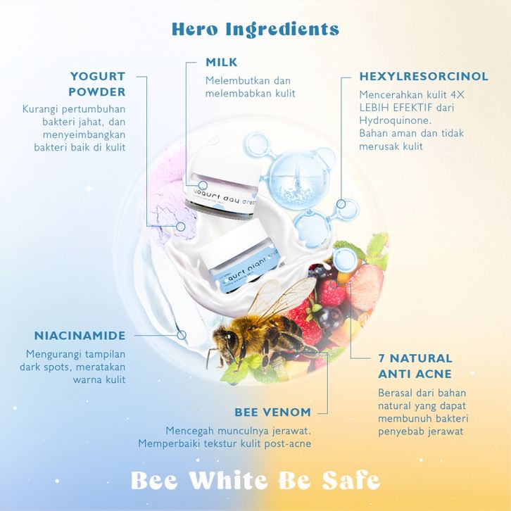 krim wajah jerawat Bye Bekas Jerawat PIH ADARA - Bee White Spotless GEL + Bee White Yogurt Day/Night Cream Moisturizer