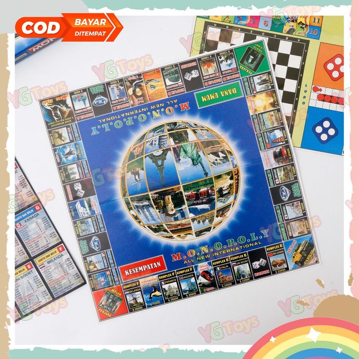 NEW Yes Toy Monopoli Ular Tangga 5 in 1 Ludo Halma Catur Mainan Keluarga Anak Edukatif afofl