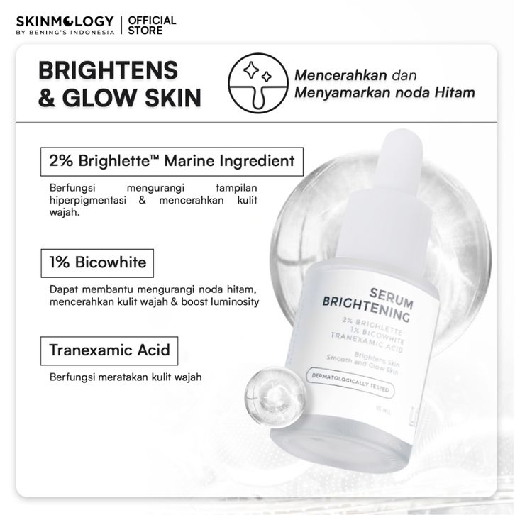 serum wajah pria Skinmology By Bening's Indonesia Serum Brightening - Brighlette Bicowhite Tranexamide Acid - Menghilan