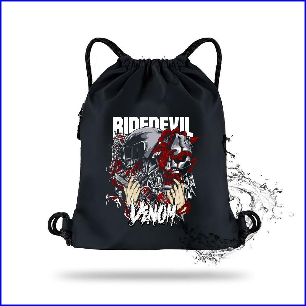 Fitras - Tas Ransel Pria Drawstring Bag Waterproff Motif Sunmori Ride Devil - Black