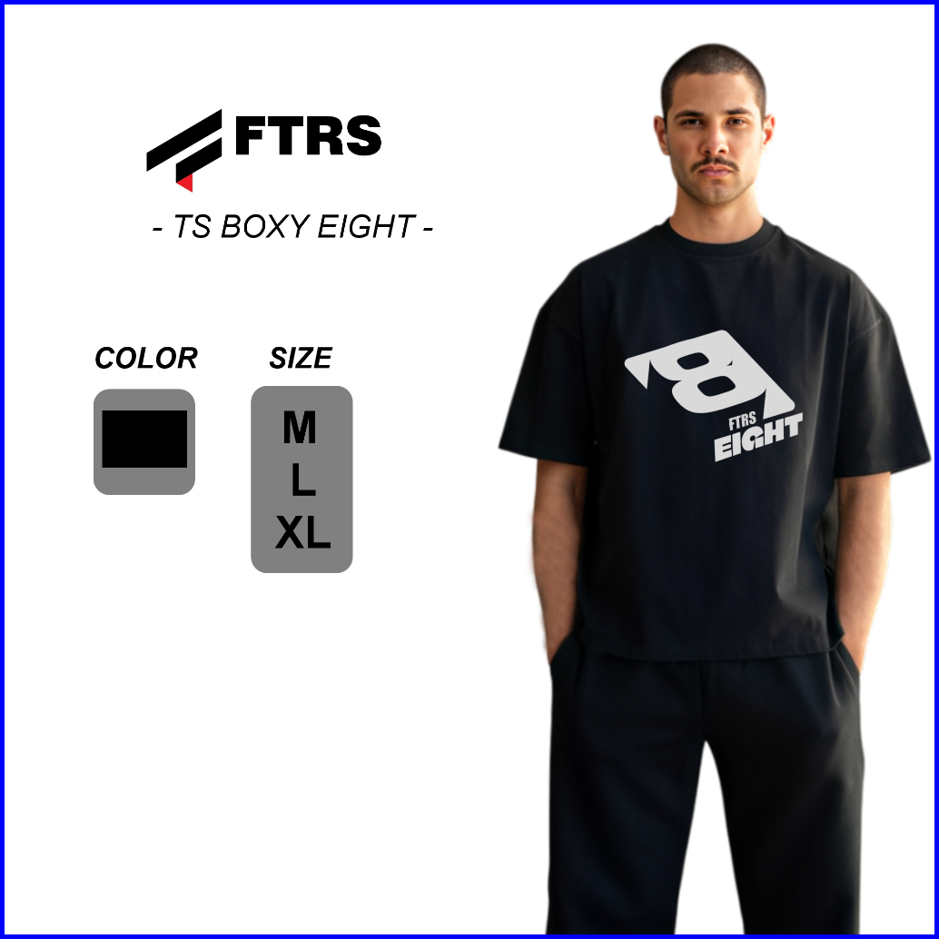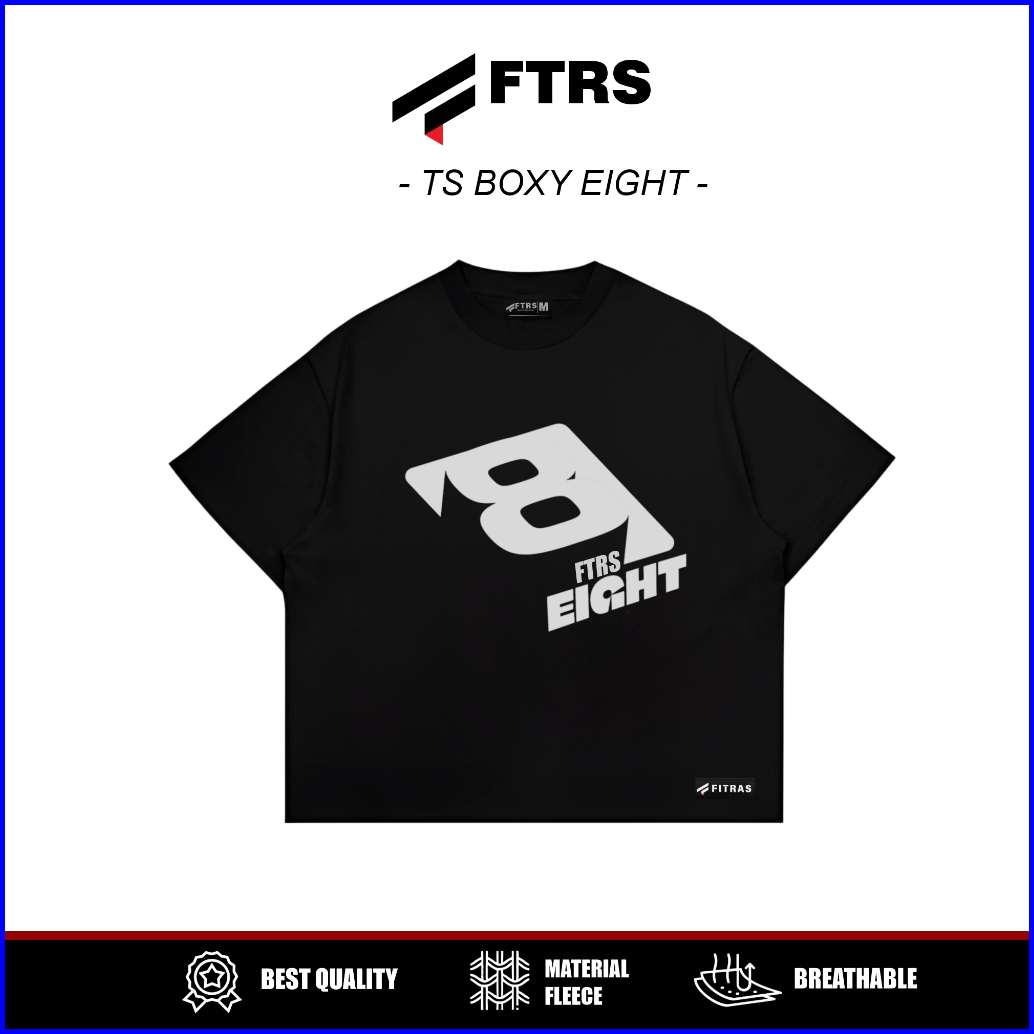 Fitras - Kaos Polos Boxy Oversized Black Unisex Eight Cotton 24s