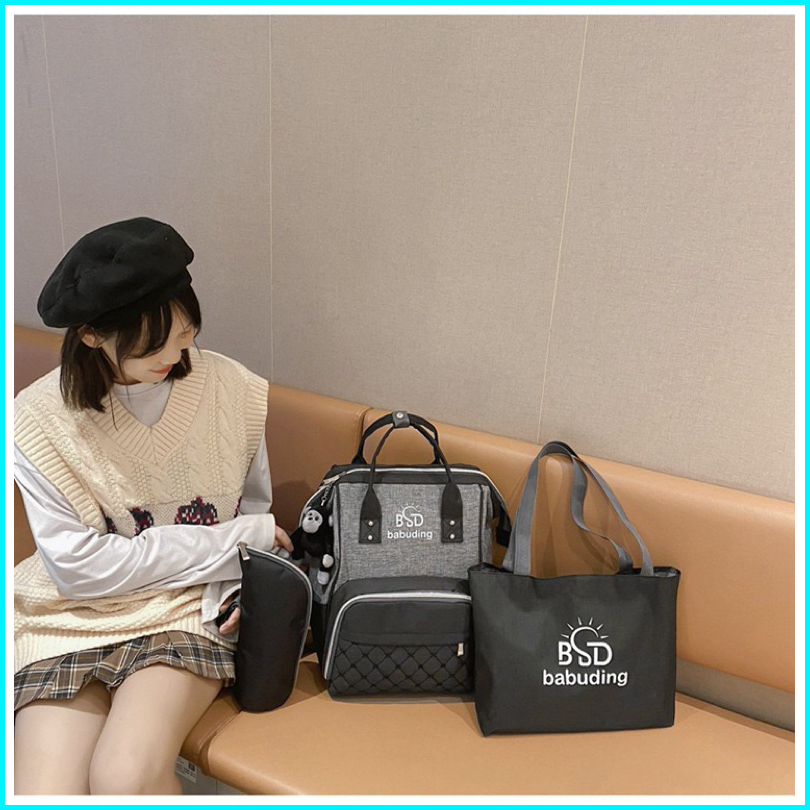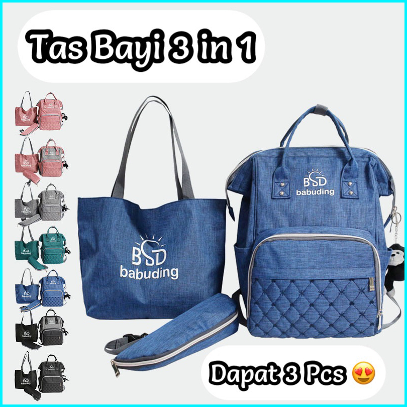 Tas Bayi 6019 - Ransel Bayi 3 In 1 Multifungsi Bsd Babuding Free Boneka Monkey Tas Perlengkapan Bayi Tas Travel Bayi Tas