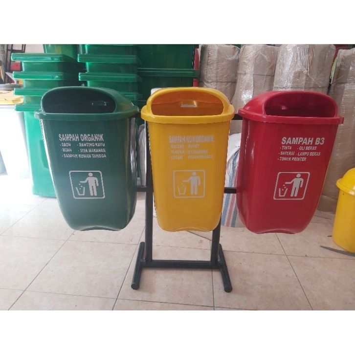 TERMURAH tempat sampah gantung model oval 3 pilah, tempat sampah outdoor, tong sampah gantung agald