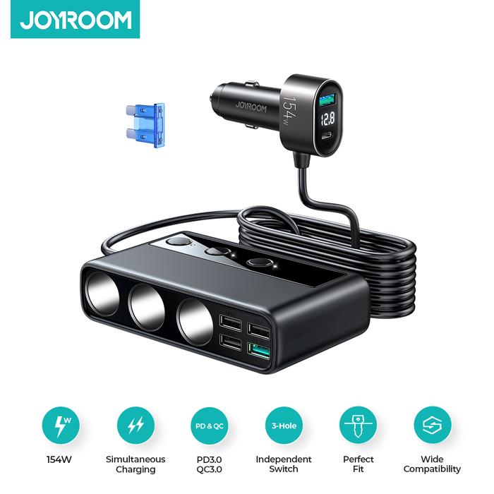 JOYROOM CL06 Adapter Car Charger Mobil with 3 Sockets + 6 Ports