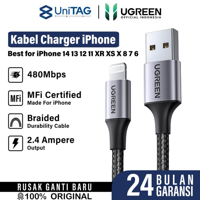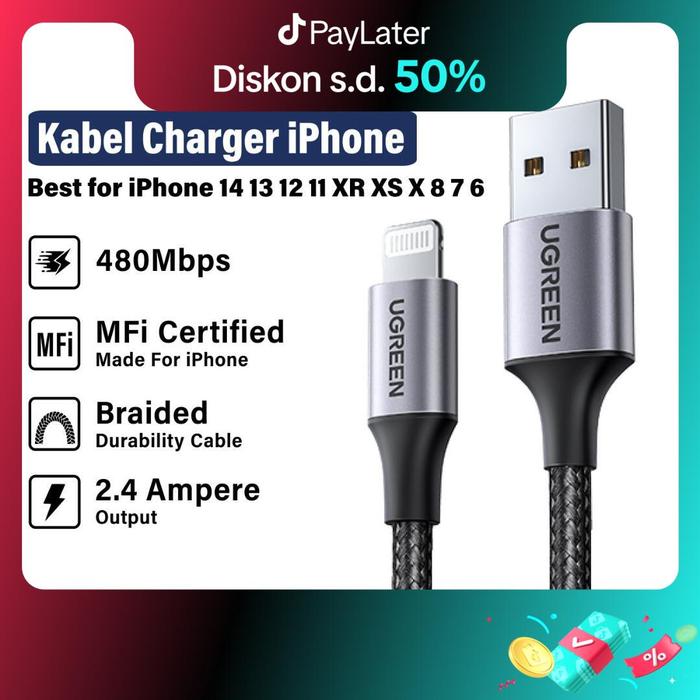 UGREEN Kabel Data Fast Charging iPhone XR XS Max X 8 SE 7 6 Plus Charger USB to Lightning Cable MFi