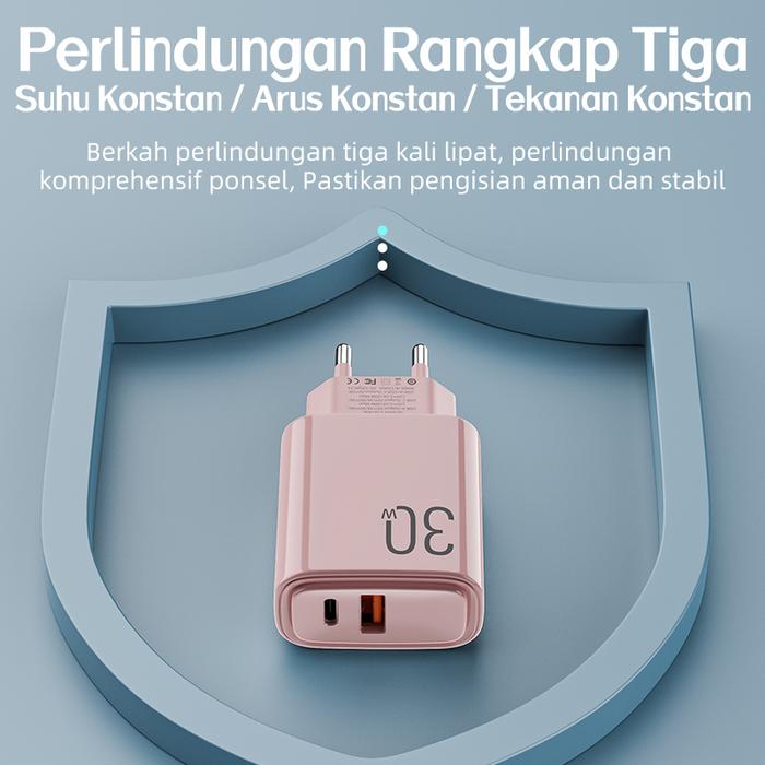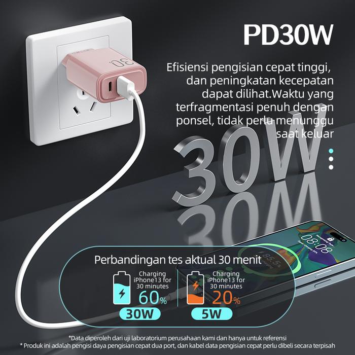KIVEE Kepala Charger Fast Charging PD 30W Dual Port Plug USB+Type-C Charger Hijau Ponsel