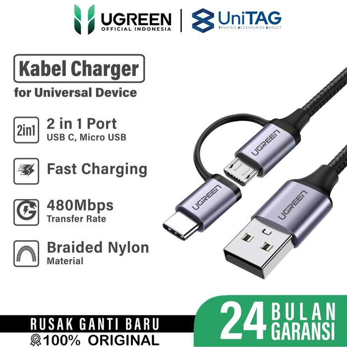 ChargerUGREEN Kabel Data Fast Charging 2 in 1 USB Micro Type C Samsung Android Cable Data Braided Charger