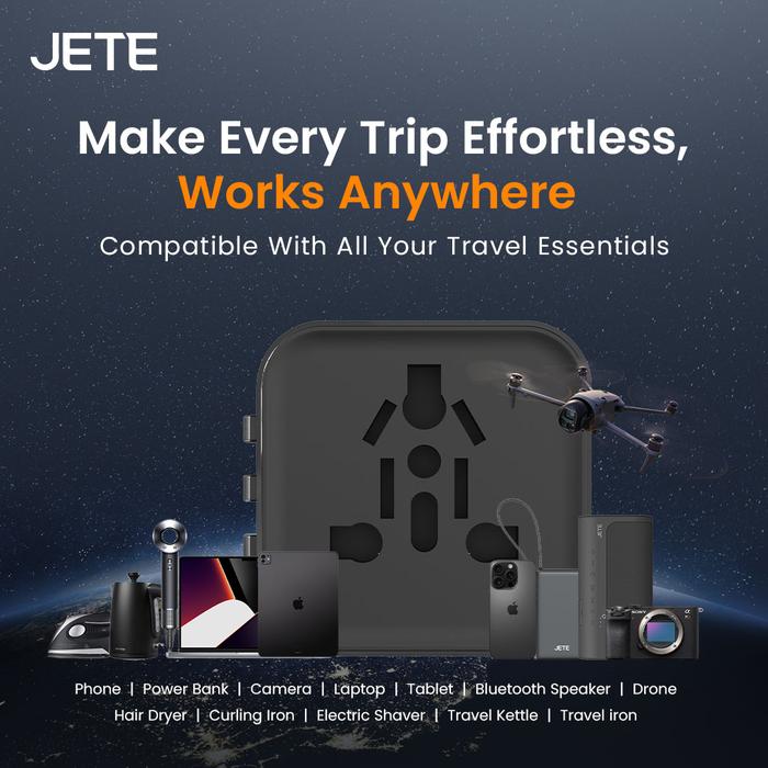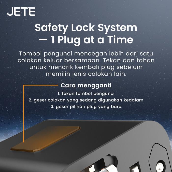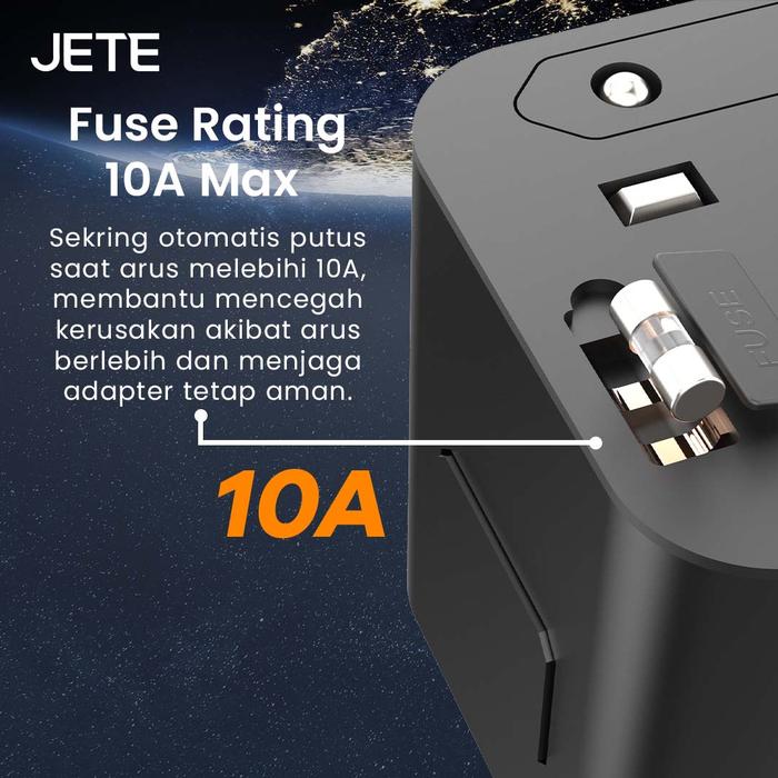 JETE CN2 8A Universal Travel Adaptor Charger Adapter USA/EU/UK Garansi 2 Tahun Batok