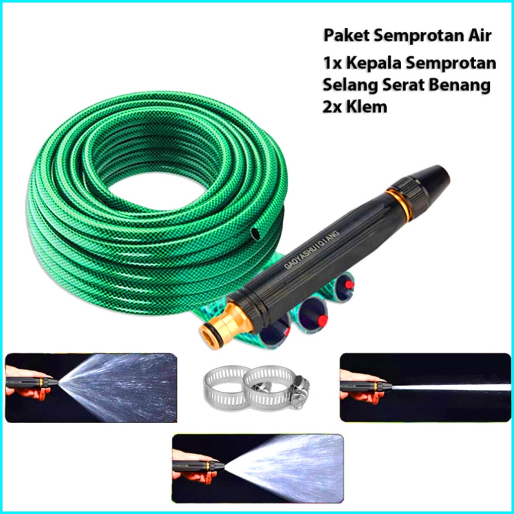 Paket Selang Set Alat Cuci Motor Selang Air Serat Benang Hijau Semprotan Air Kuningan - Selang Air Selang Taman Serat Be