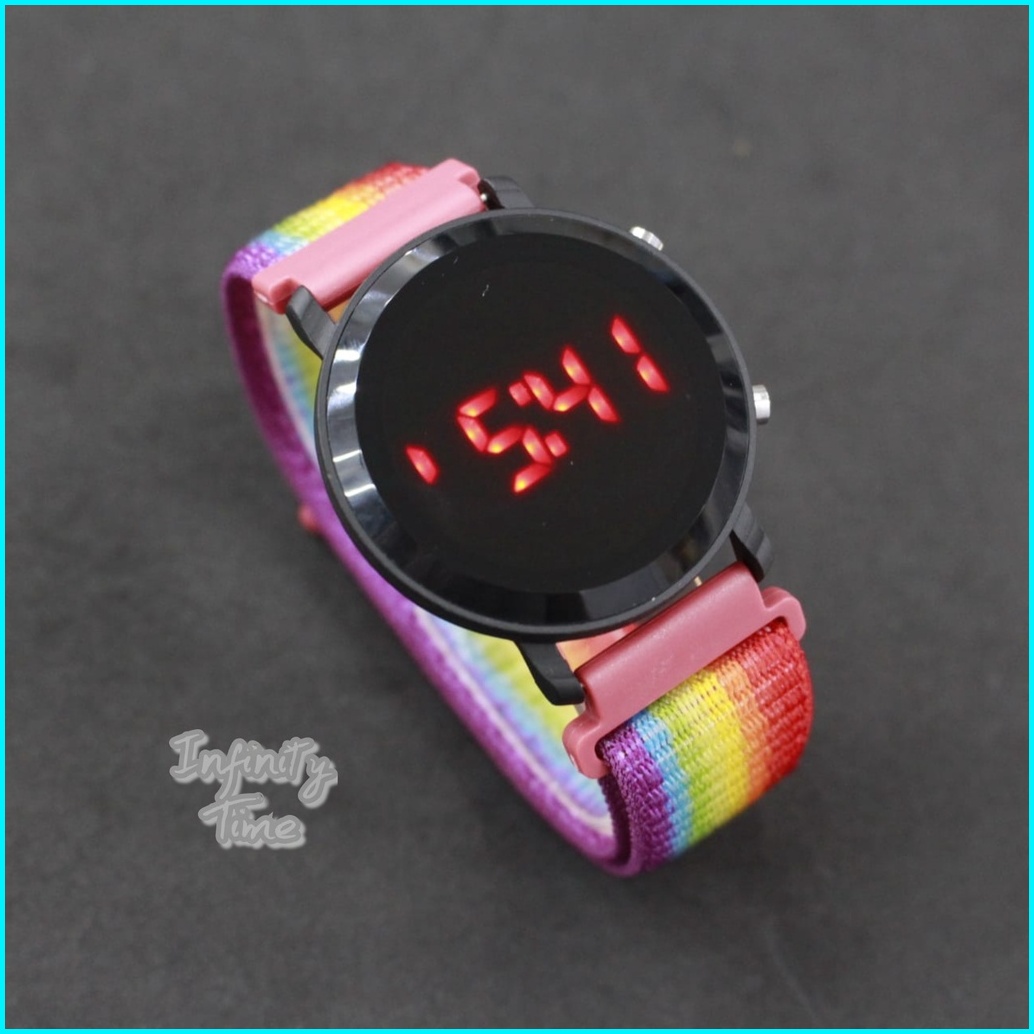 Jam Tangan Cowok Cewek Led Watch Bulat Digital Strap Nylon