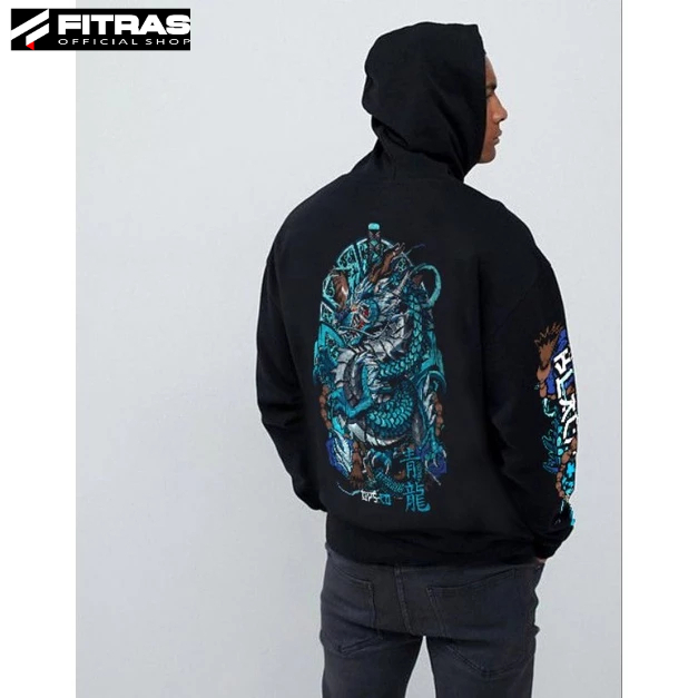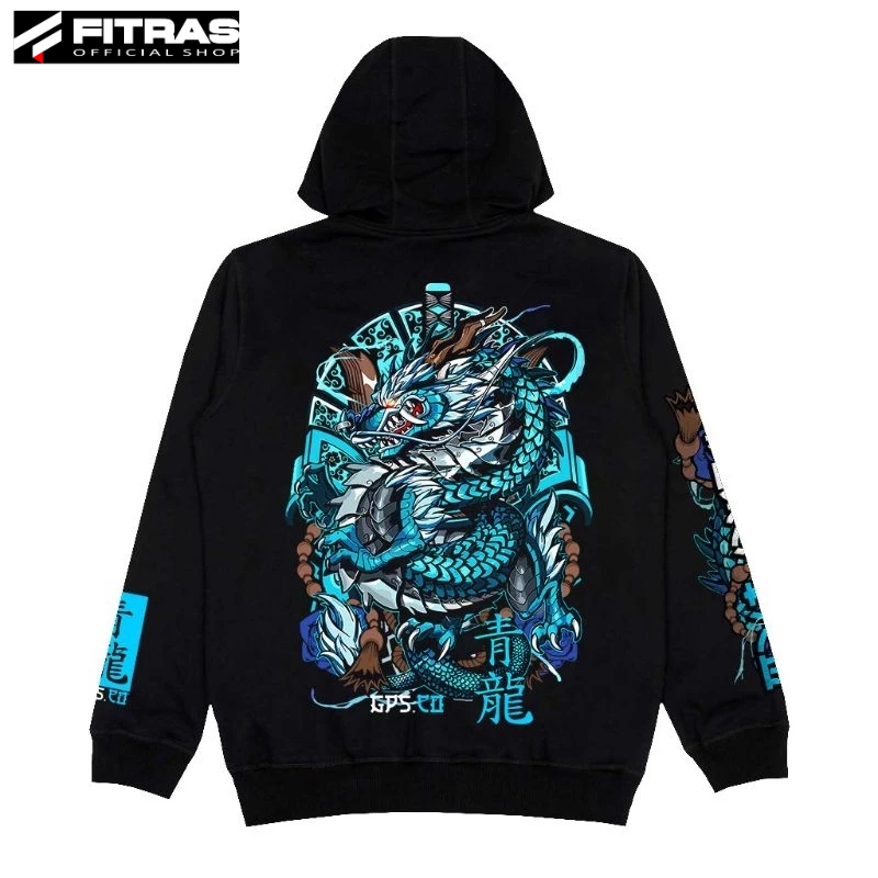 FITRAS - Hoodie Pria Blue Dragon Motor Sunmori Bahan Fleece Premium - Black Series