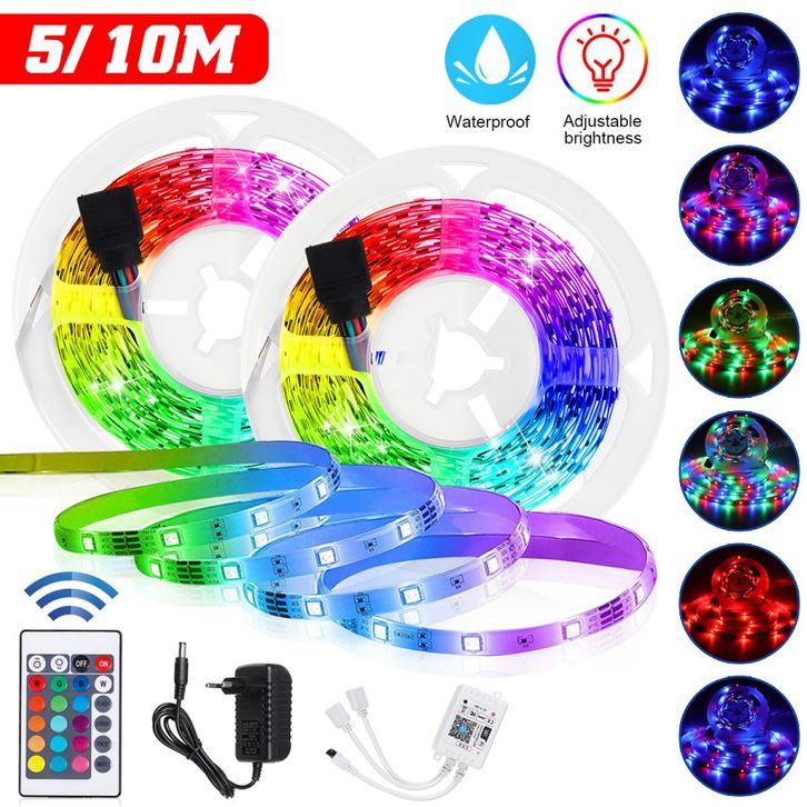 Lampu Led Strip RGB Warna Warni SUPER IP44 2835/5050 5m 10m Komplit Set Adaptor Remote WATERPROOF