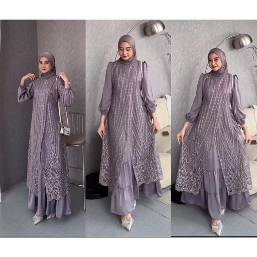 Gamis Wanita Brukat Dress Kondagan Modren Tille Prermium Terbaru
